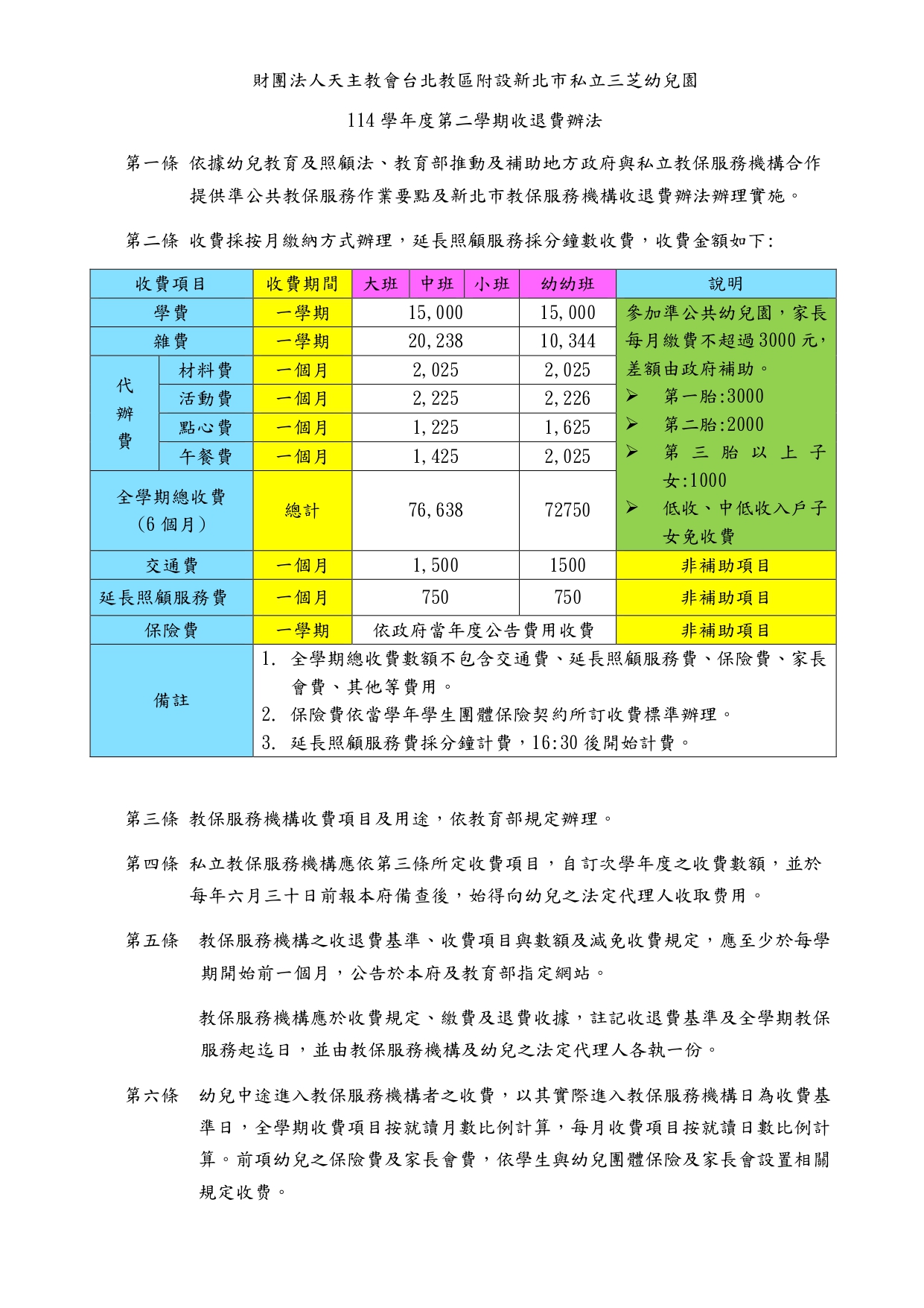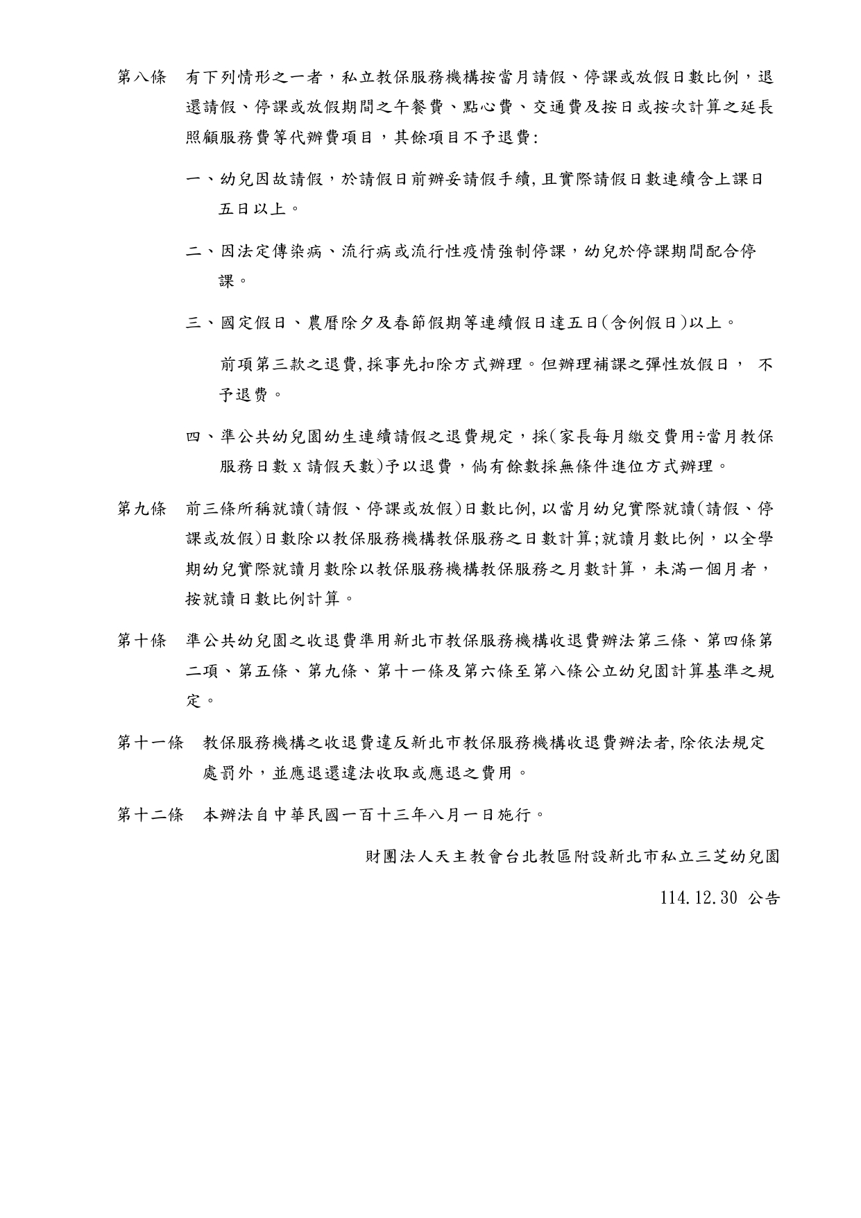 114學年度 收退費辦法